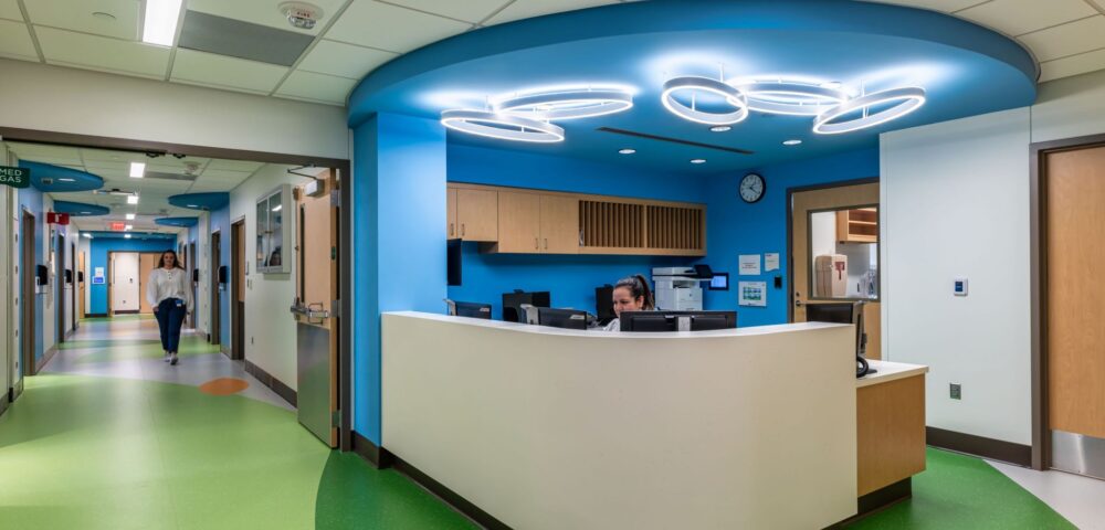 Renovation of the old behavioral wing of the hospital to create 10 new Med/Surg patient rooms each with its own bathroom, plus a new staff lounge, nurses’ station, medication room, clean and soiled holdings, and a storage room. The 10-month project required work both above and below the 5th floor, including 4 ½ months of underfloor work that took 7 phases to complete, all while the facility was operational.